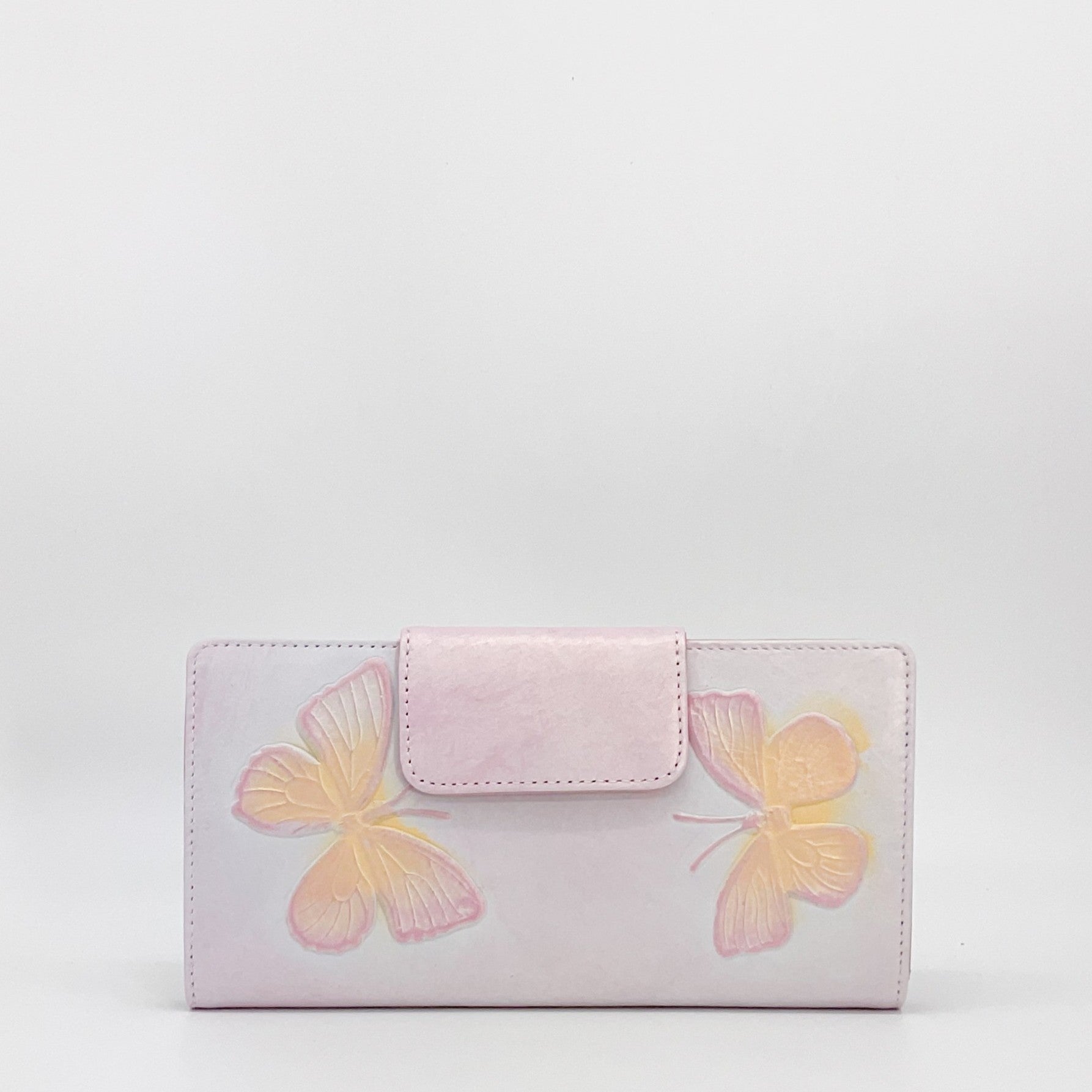 オーダーメイドの一点もののように、それぞれ違う蝶が美しく舞う華やかなイタリアンレザーのシリーズ