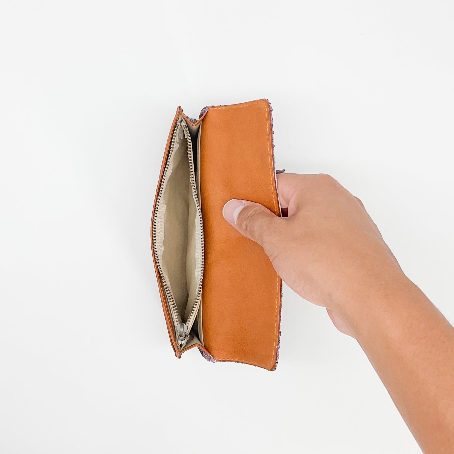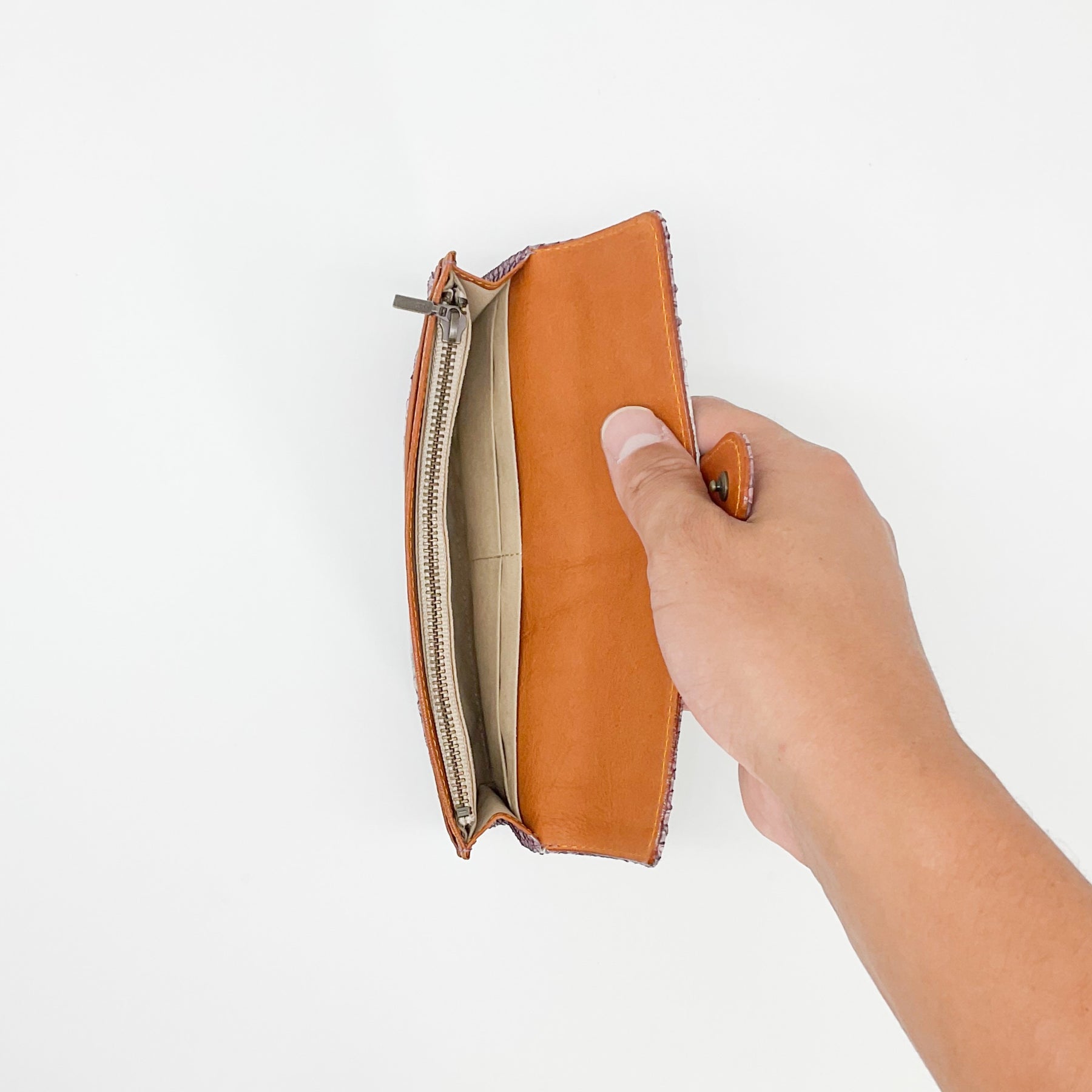 従来のかぶせタイプのお財布より、高さが低いので持ちやすいつくりになっています。