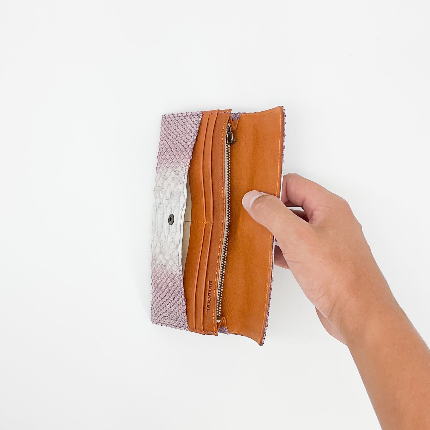 ※ 使用していくと少しづつ、お財布の形に馴染みウロコが立たなくなってきますので、パイソンレザー独特の経年変化をお楽しみください。