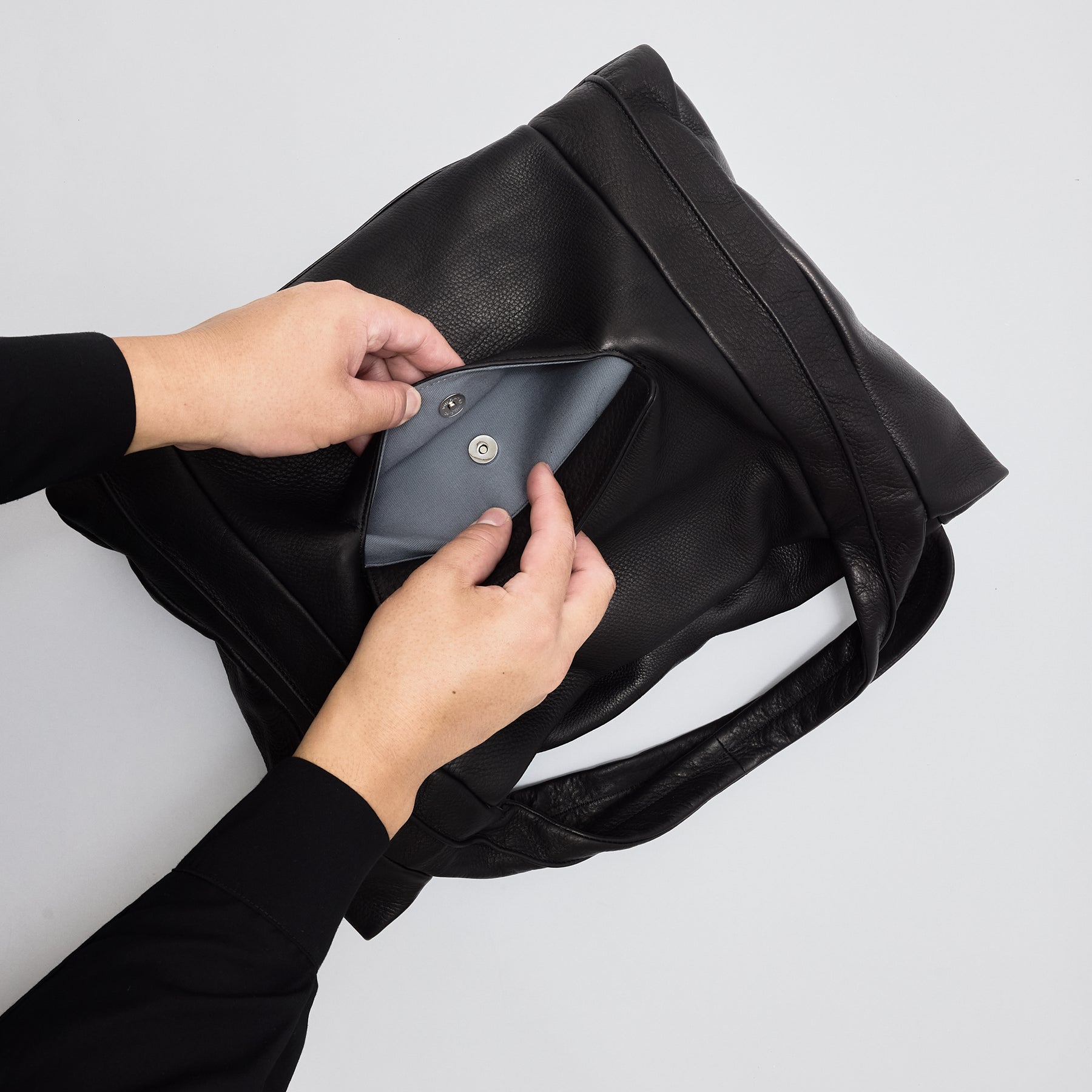 肉厚のある仔牛革は見ためより軽くしなやかな革です。