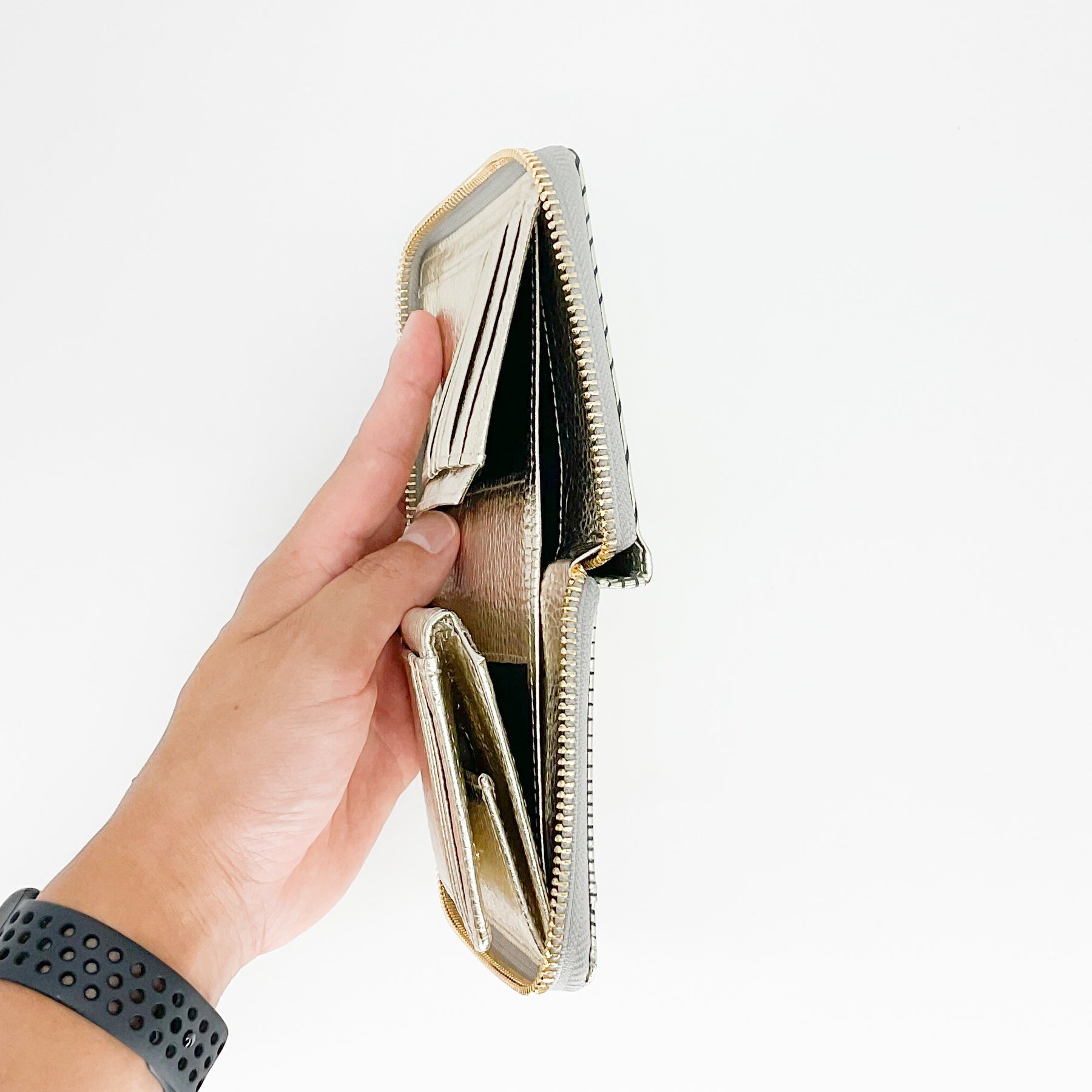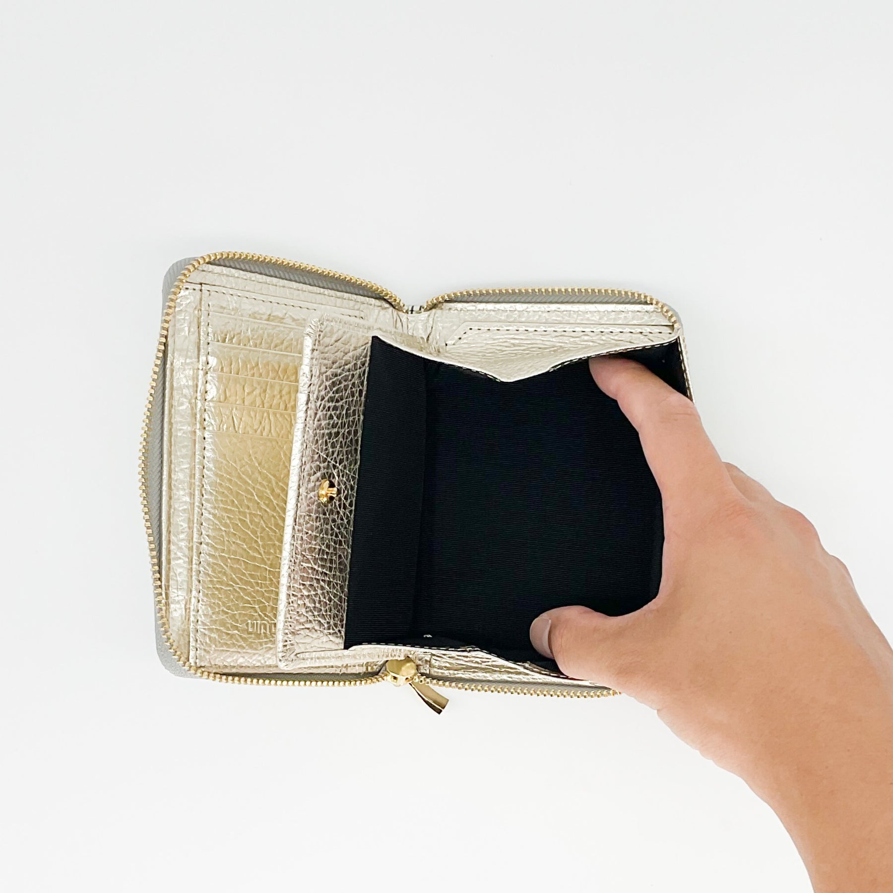 ラウンド(コの字型)ファスナータイプの短財布です。