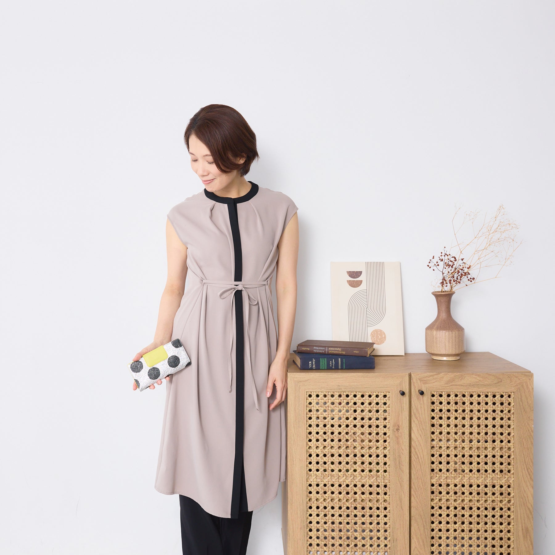 ファスナーテープと裏地のナイロンをドットのブラックに統一しています。