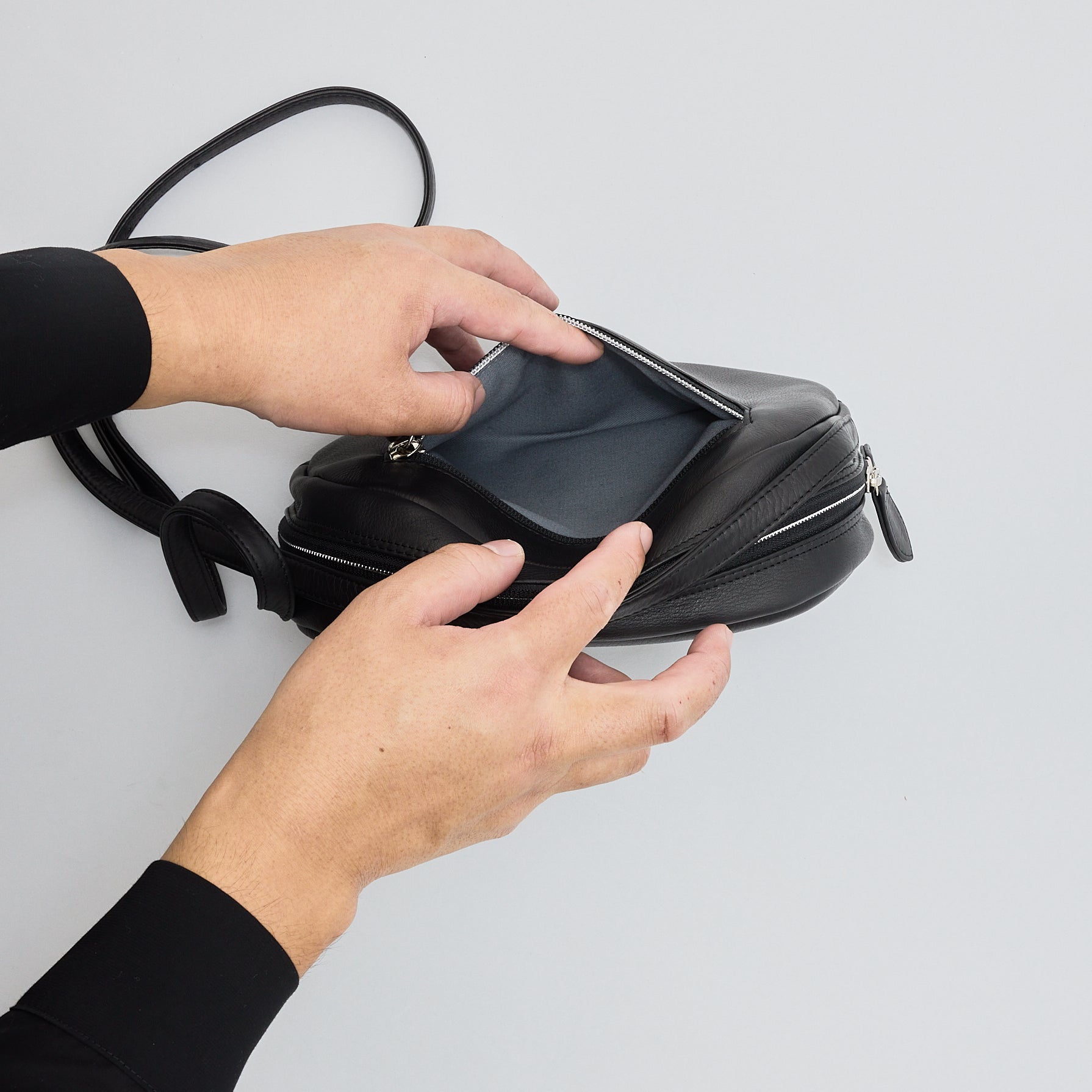 サイズ感を、大事に考えてデザインされているので、さらりと小ぶりなもの、肩にかけた時にボディーに沿うような柔らかさのあるデザインになっています。